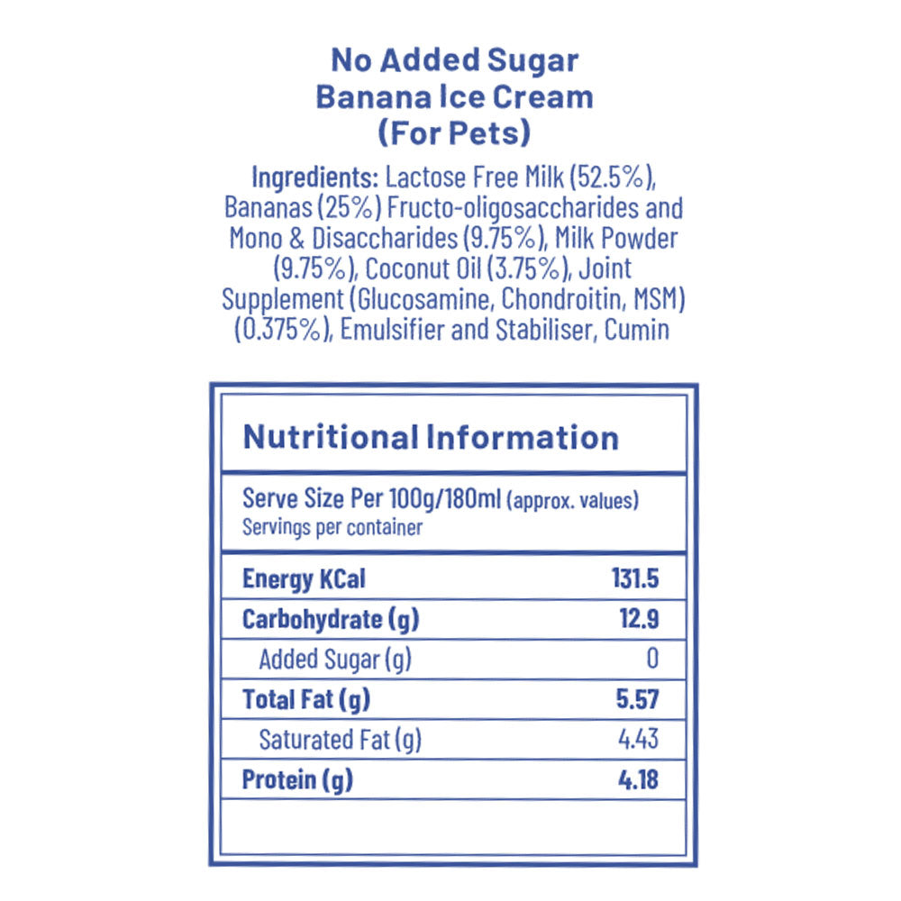 Made with chunks of banana and all natural ingredients, Bruno’s Banana is a creamy fruit ice cream made for pets who love having bananas. Every tub is handcrafted with love and care because pets are family